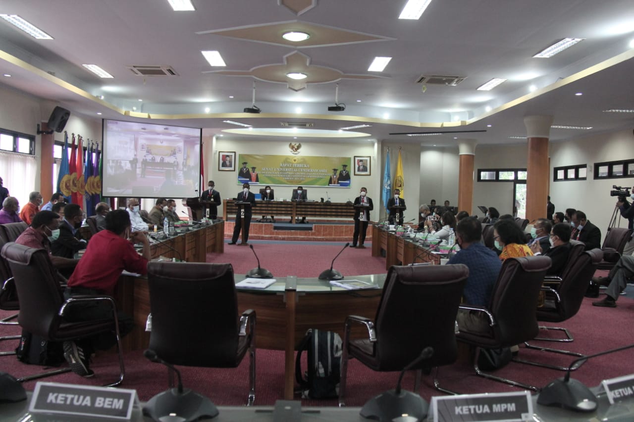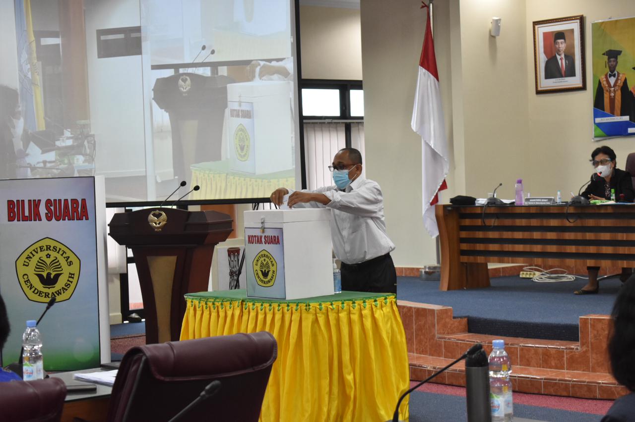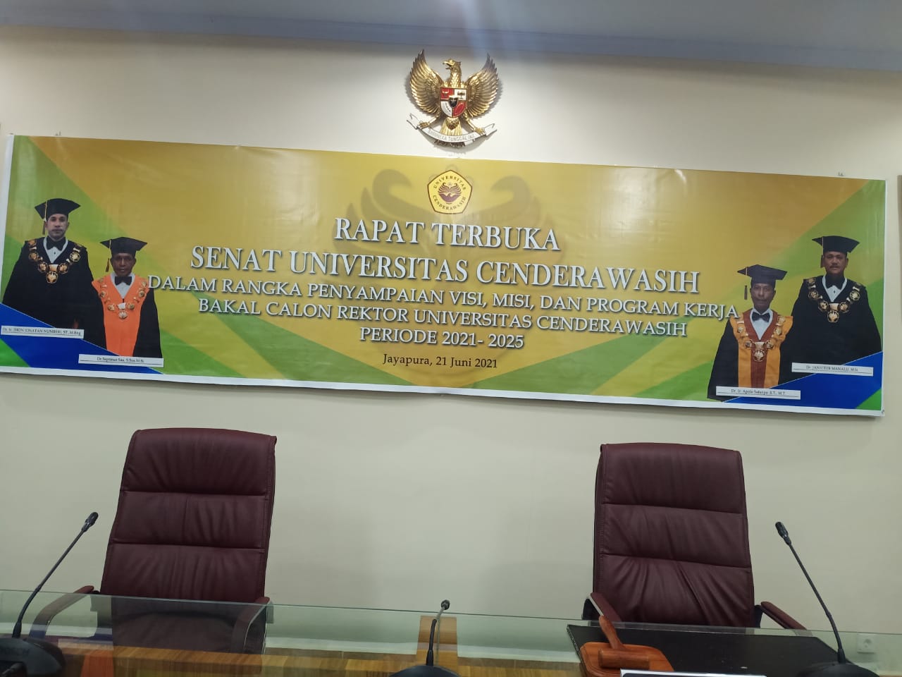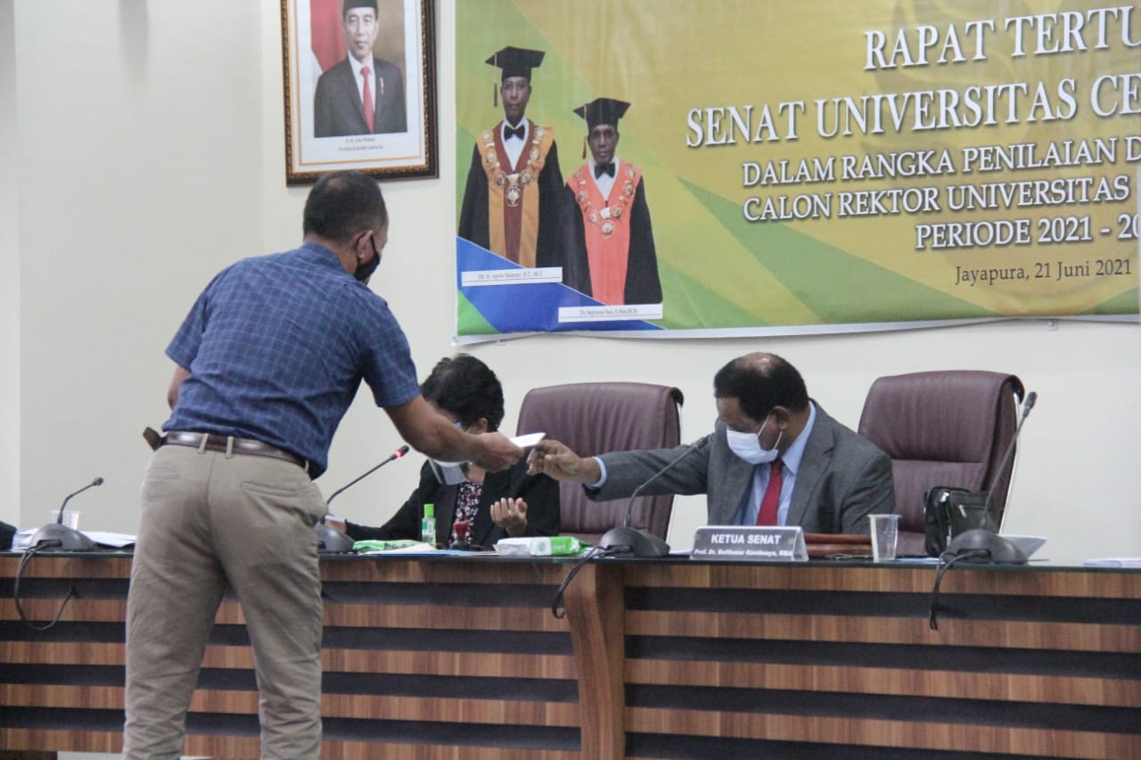 - penilaian dan penetapan 3 (tiga) Calon Rektor oleh Senat dalam rapat Senat tertutup (Tanggal 21 Juni 2021, pukul 14.30 – 17.00 WIT bertempat di Ruang Rapat Senat Universitas Cenderawasih Gedung Rektorat Lt. 3 Kampus Waena).